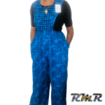 Combinaison damier en Pagne ( Wax) Bleu et noir – S à XL