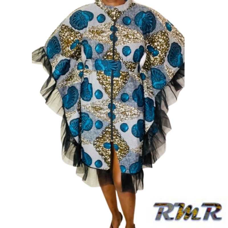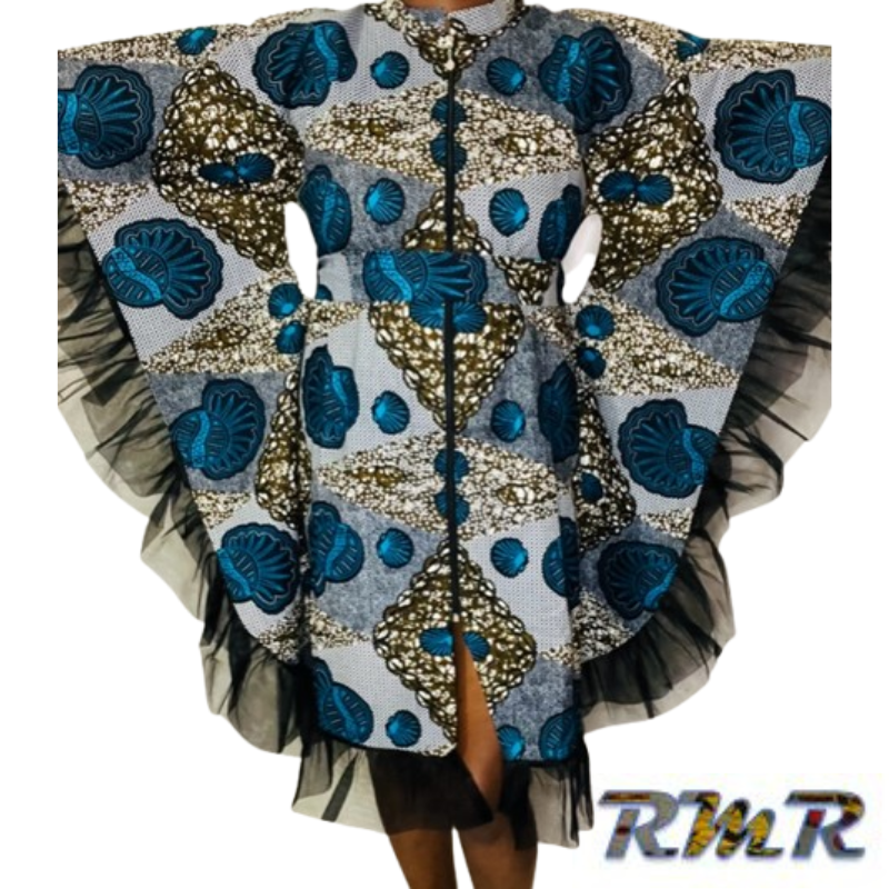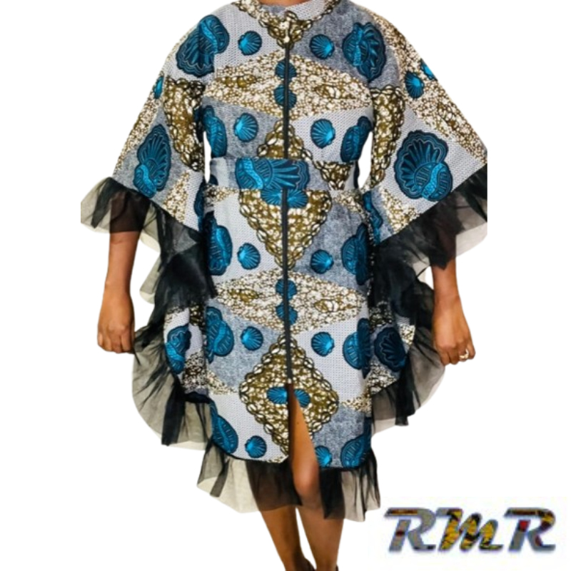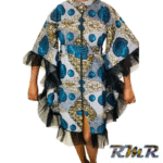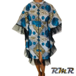Robe boubou courte en Pagne ( Wax) bleu et noir – S/M/L