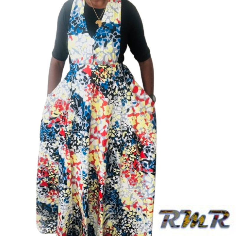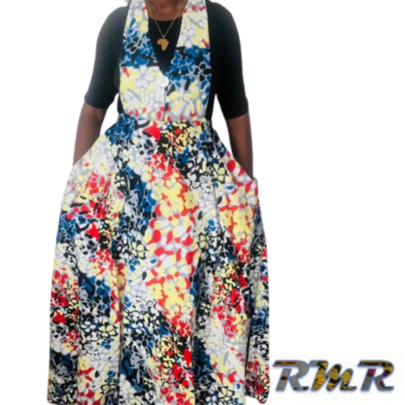 Robe longue : Robe salopette en wax de couleur multi couleur